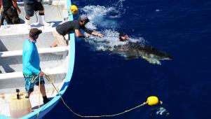Along the coastline of LA, great white sharks are increasing and seem to be hunting out of season. Dr. Chris Lowe returns to Shark Week to find out why. His investigation takes him to Guadalupe Island, off the coast of Mexico, where he finds the answer.